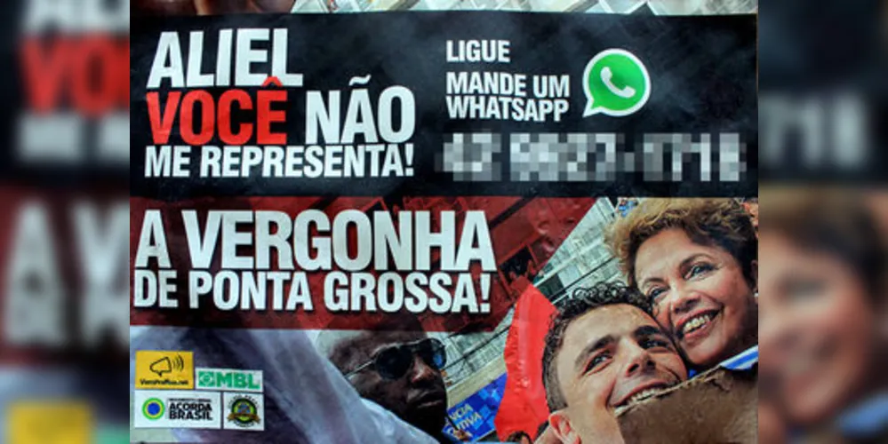 Panfletos distribuídos nas ruas de Ponta Grossa afirmam que o deputado federal Aliel Machado (Rede) é a "vergonha de Ponta Grossa". Número do telefone do deputado foi divulgado nos panfletos.