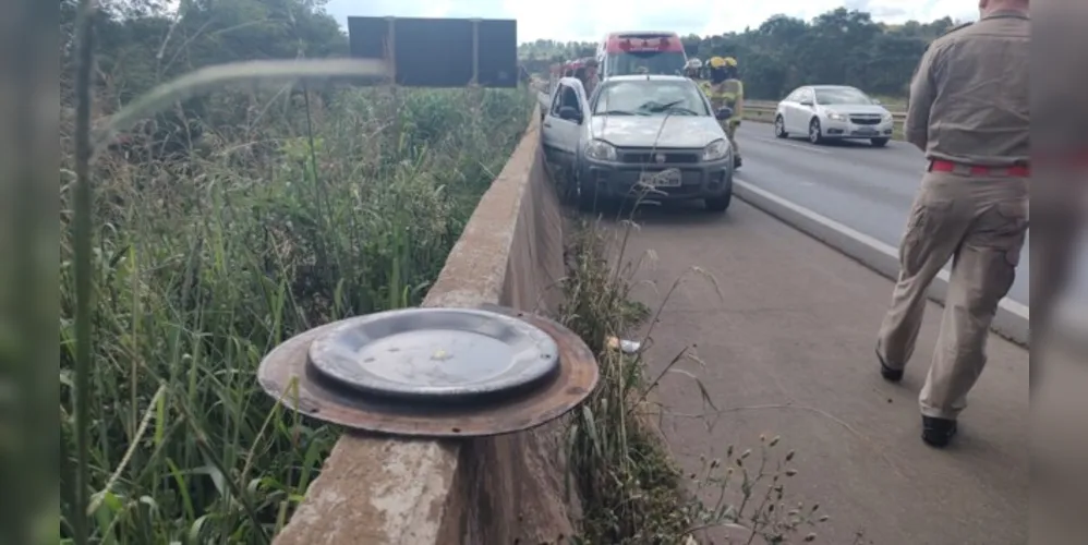 Peça de caminhão atinge 'em cheio' veículo na BR-376