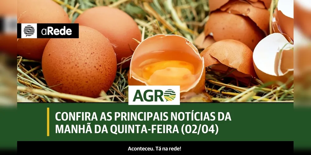 Acompanhe as principais notícias do agronegócio da manhã da quinta-feira (02/04) no 'Boletim Agro' do Portal aRede.
