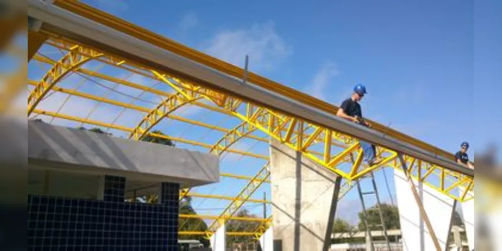 Quadra esportiva coberta da Escola Erasmo Pilloto, de Rebouças, deve ser entregue para a comunidade nos próximos meses.