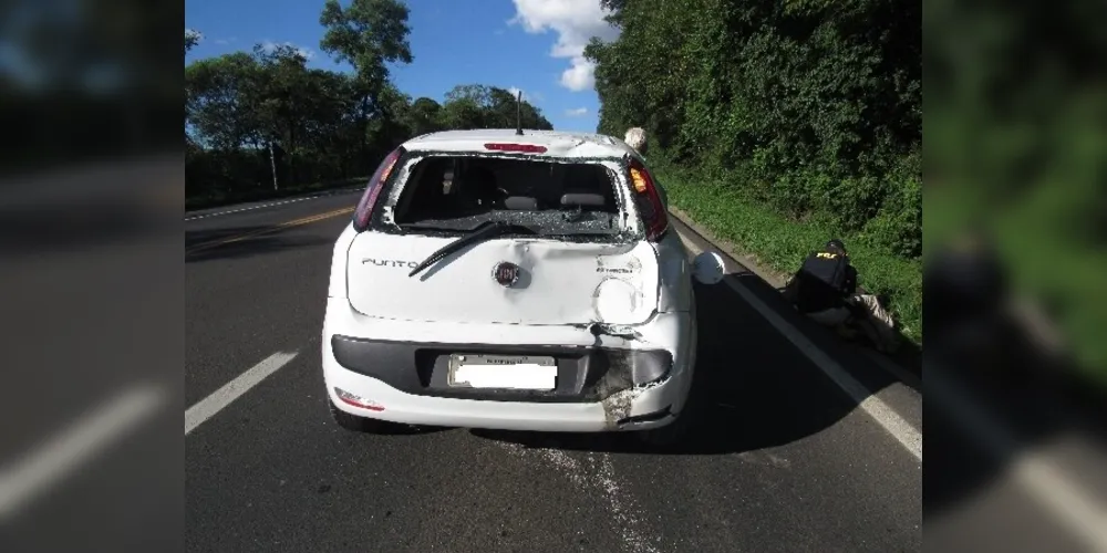 Motociclista colidiu na traseira de um Fiat Punto e precisou ser encaminhado ao hospital. Segundo PRF, moto estava sem registro e com placa de outro veículo.