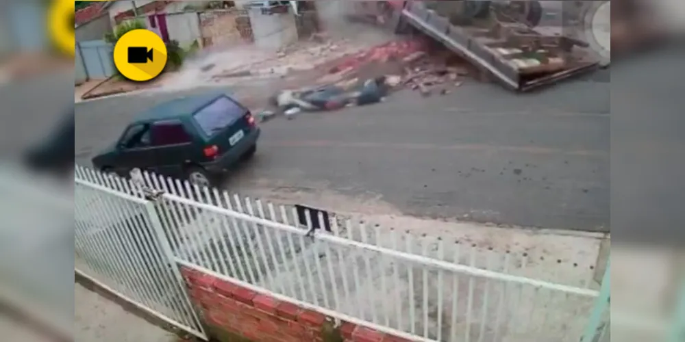 Imagens de segurança flagraram um acidente no fim da tarde da última segunda-feira (11), na Rua Amilton Bueno, na cidade de Castro. Por volta das 18h16, um caminhão desgovernado acabou atingindo duas casas, e tombando na sequência, deixando três crianças feridas. De acordo com as informações iniciais, o veículo pode ter apresentado problemas no freio, o que teria ocasionado a ocorrência.