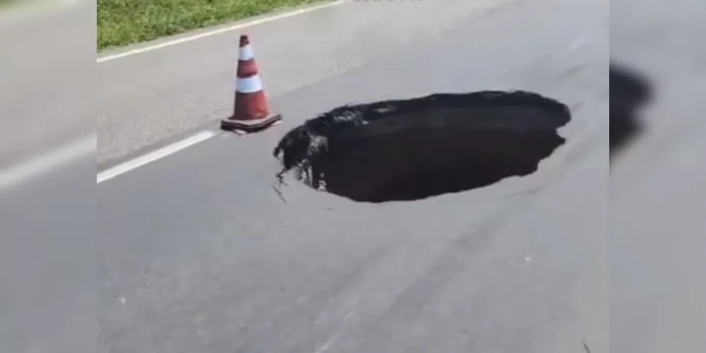 'Cratera' se abre na PR-151, em Castro; asfalto já foi consertado