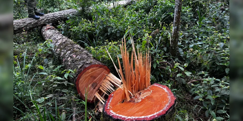 Infração ambiental: A Polícia Militar Ambiental autuou um proprietário rural em Teixeira Soares pelo corte irregular de oito árvores de pinheiro-araucária, espécie protegida.