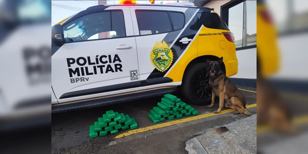 Na sequência, o ônibus foi abordado e o cão de detecção Máximus foi empregado nas buscas. Primeiramente, no bagageiro do ônibus, houve indicação positiva em uma mala de viagem que se encontrava junto às demais bagagens. Devido à indicação do cão, a mala foi aberta pela equipe policial, localizando em seu interior grande quantidade de maconha em forma prensada.