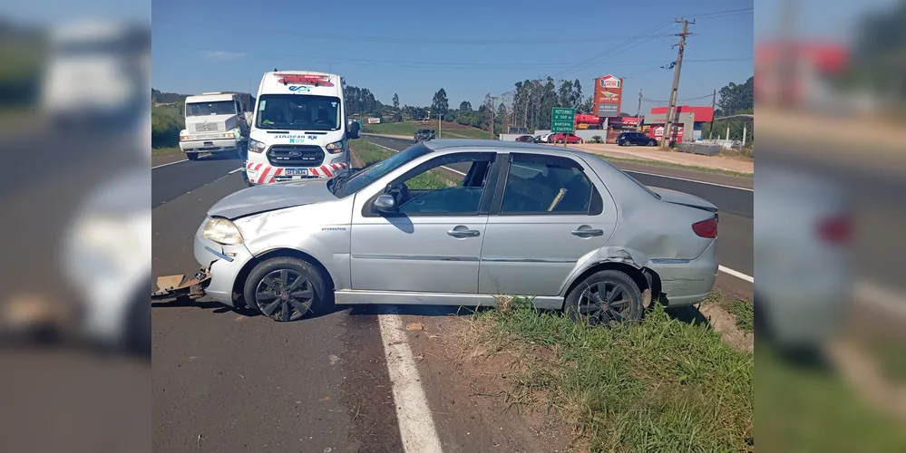 Um acidente do tipo colisão lateral envolvendo um caminhão e um Fiat Siena foi registrado na manhã desta quinta-feira (5), no km 290 da PR-151, trecho entre Carambeí e Castro. O condutor do carro sofreu ferimentos leves e foi encaminhado à Unidade de Pronto Atendimento (UPA) do município.
