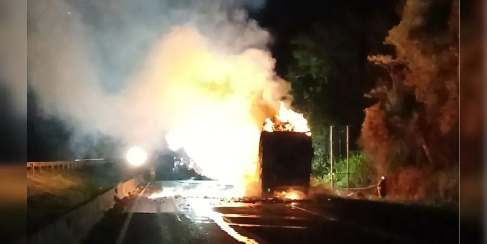 Conforme a Polícia Rodoviária Federal (PRF), o incêndio ocorreu por volta de 1h30 da madrugada desta quinta, no km 383, sentido decrescente da rodovia. O caminhão Scania G360, que pegou fogo, possuía placas de Maringá (PR).