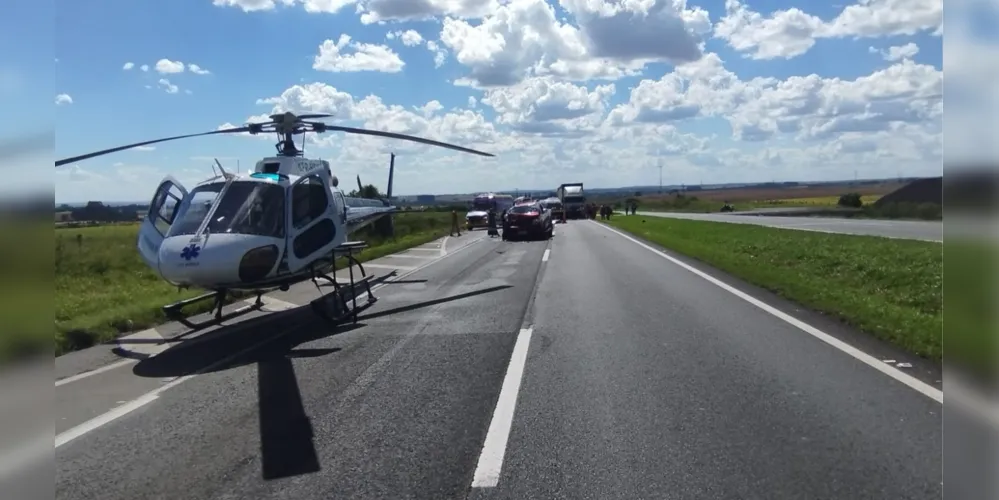 A garupa de uma motocicleta morreu em um grave acidente registrado na tarde desse domingo (15), na BR-376, entre Ponta Grossa e Campo Largo. O piloto da motocicleta ficou em estado grave e a aeronave do SAMU foi acionada para prestar socorro ao motociclista. A vítima fatal tinha 64 anos.
