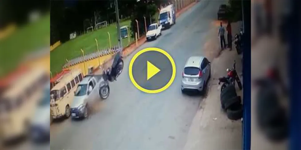 Motociclista é arremessado, bate e sofre apenas fraturas; assista