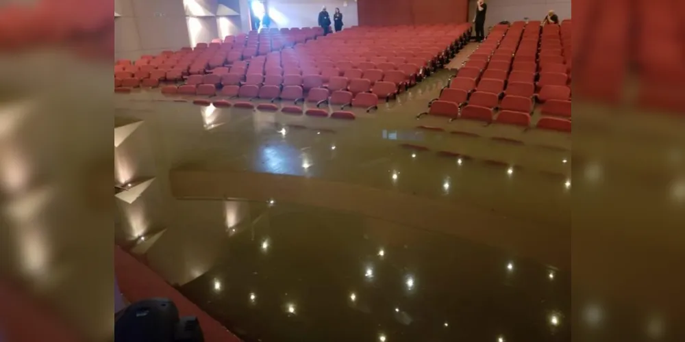 Chuva forte em Curitiba alaga auditório da PUCPR