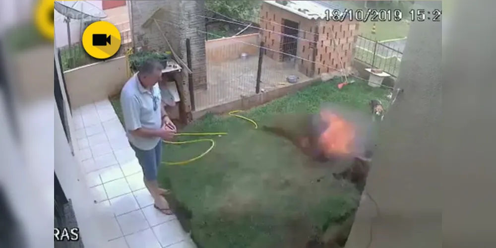 Câmeras de monitoramento registraram o momento em que um homem explodiu o quintal de casa ao tentar matar baratas com gasolina, veneno em spray e fogo. O incidente aconteceu em Enéas Marques, localizado no sudeste do Paraná.