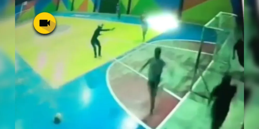 Nas imagens registradas por câmeras do colégio, é possível ver que um grupo de pessoas que estava assistindo à partida corre assim que escuta o primeiro disparo. Em seguida, dois suspeitos invadem a quadra e atiram na direção a um jovem. A vítima tenta correr, mas é perseguida pelos criminosos.
