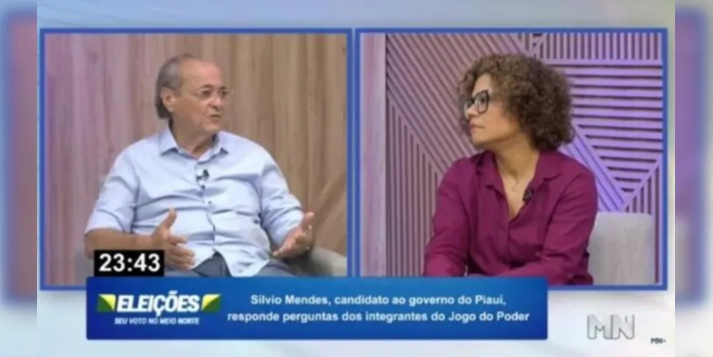 O candidato Silvio Mendes (União Brasil), que concorre ao Governo do Piauí, fez um comentário racista para a jornalista Katya Dangeles, que é uma mulher negra, durante entrevista à TV Meio Norte nesta quarta-feira (31). Ele disse que a profissional "era quase negra, na pele", mas ainda "é uma pessoa inteligente". Veja o vídeo no player acima: