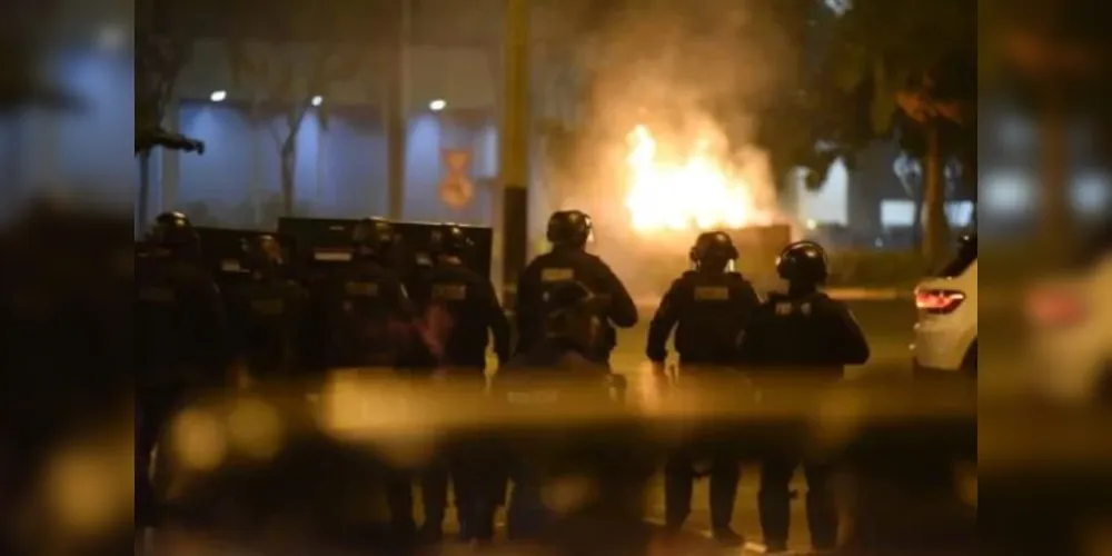 Vestidos com camisetas da Seleção Brasileira, o grupo danificou dezenas de carros que estavam estacionados nos arredores do prédio da corporação. Alguns, inclusive, chegaram a ser incendiados. Para tentar impedir a depredação, policiais reagiram disparando tiros de balas de borracha e lançando bombas de efeito de moral.