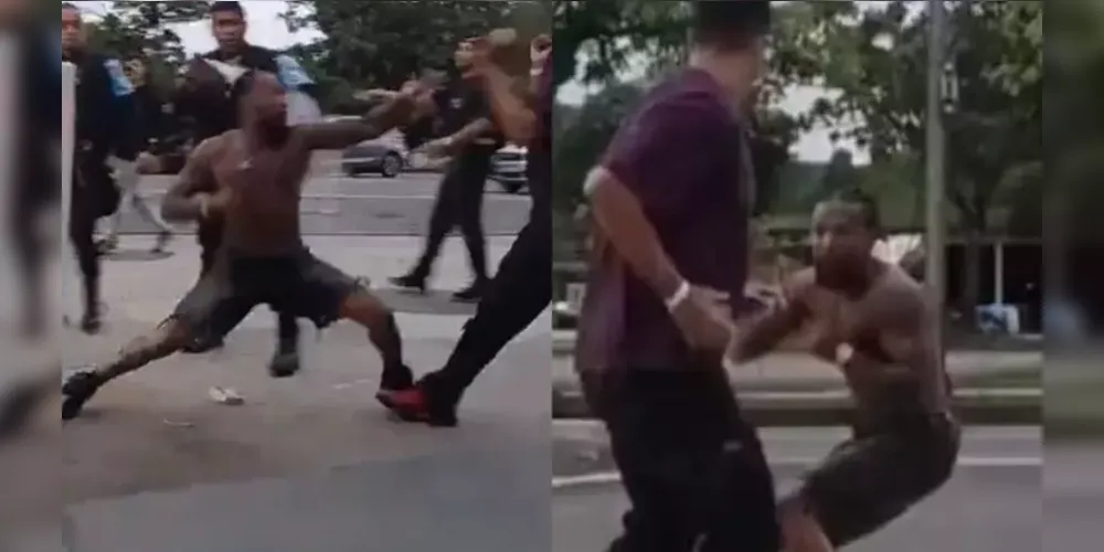 Em um vídeo que circula nas redes sociais, é possível ver o funkeiro trocando socos sem camisa enquanto pessoas observavam. Agentes precisaram jogar spray de pimenta para separar os dois, mas a confusão só foi terminar quando ambos foram encaminhados para o departamento de polícia.