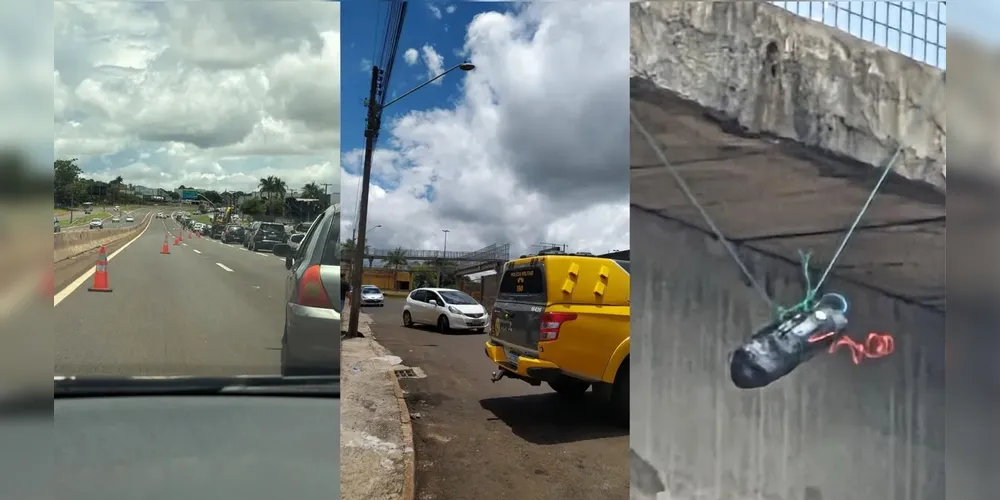 Interdição total da rodovia: A PR-445 foi totalmente bloqueada na tarde desta terça-feira (13), no km 78, em Cambé, após a identificação de um suposto artefato explosivo em uma passarela de pedestres, interrompendo o tráfego nos dois sentidos sem previsão de liberação.