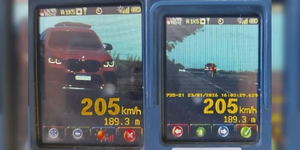 Uma BMW foi flagrada correndo a 205 km/h na BR-163, no município de Cascavel, no Oeste do Paraná. O registro, feito pela Polícia Rodoviária Federal (PRF), foi na sexta-feira (23), durante fiscalização de velocidade no distrito de Sede Alvorada.