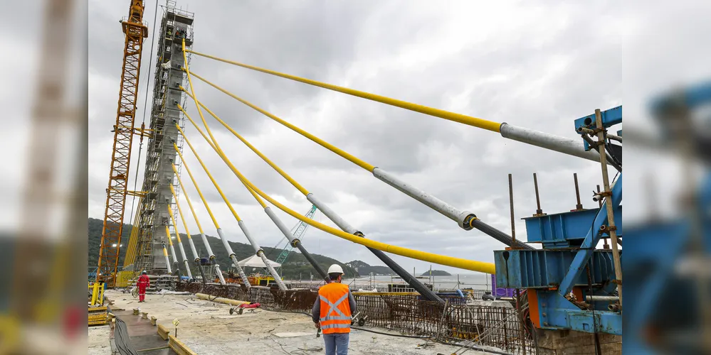 Ponte de Guaratuba avança em etapa complexa e tem último estai instalado