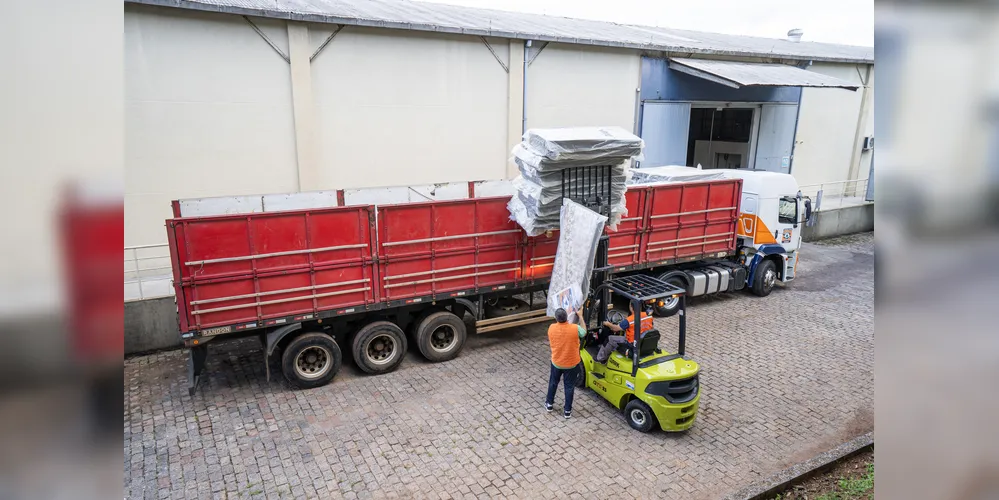 Um caminhão baú e uma carreta seguiram para Belo Horizonte, em Minas Gerais, levando colchões, 300 kits de kits de limpeza e 300 kits de higiene