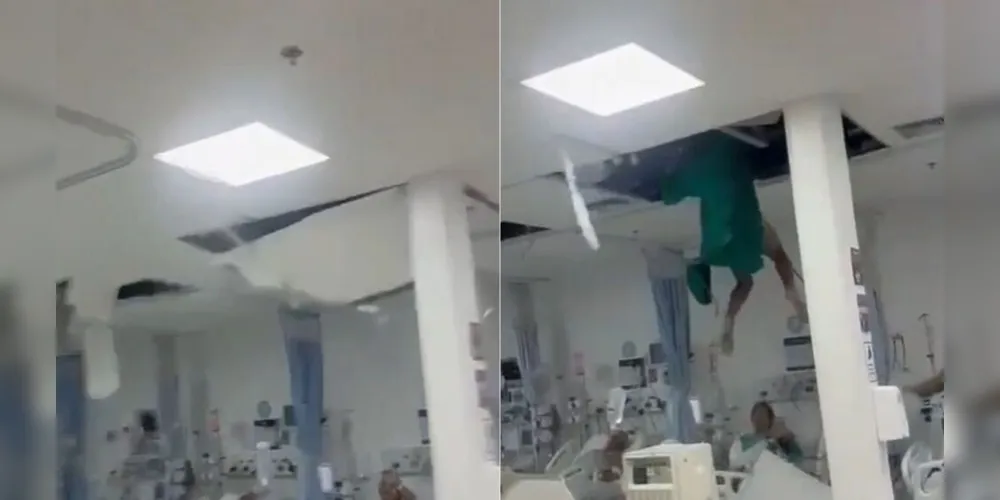 - O momento da queda foi registrado em vídeo e assustou pacientes e funcionários da unidade.
