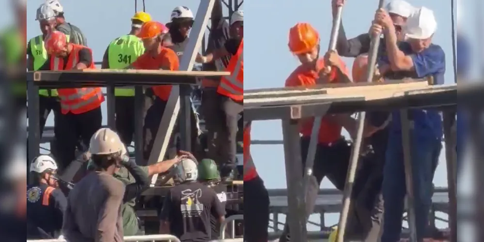 De acordo com relatos de profissionais que estavam no local, um trabalhador sofreu esmagamento de membros inferiores em um sistema de elevação. Antes da chegada das equipes, a vítima já havia sido retirada do equipamento por outros funcionários presentes.