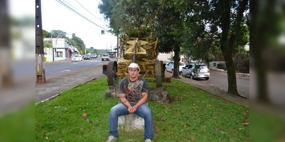 O agricultor Dangley José Paz da Silva, de 32 anos, se amarrou em uma máquina na Praça da Cango, em Francisco Beltrão, no sudoeste do Paraná. O homem chegou ao local às 8 horas de hoje (15) e promete um pronunciamento ao meio-dia.
