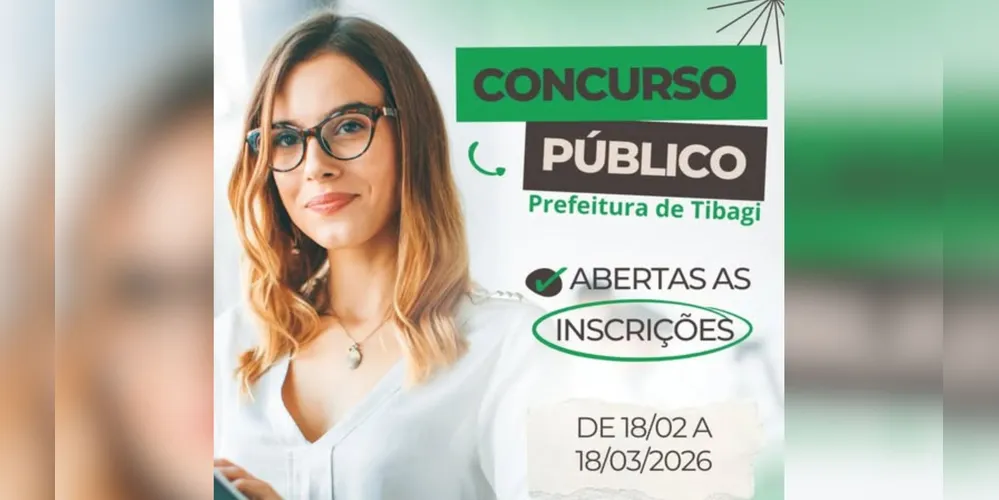 A Prefeitura de Tibagi abriu na última quarta-feira (18) as inscrições para o Concurso Público nº 01/2026. O objetivo do concurso é a formação de cadastro de reserva e ao provimento de vagas efetivas no quadro de servidores municipais, sob regime estatutário.