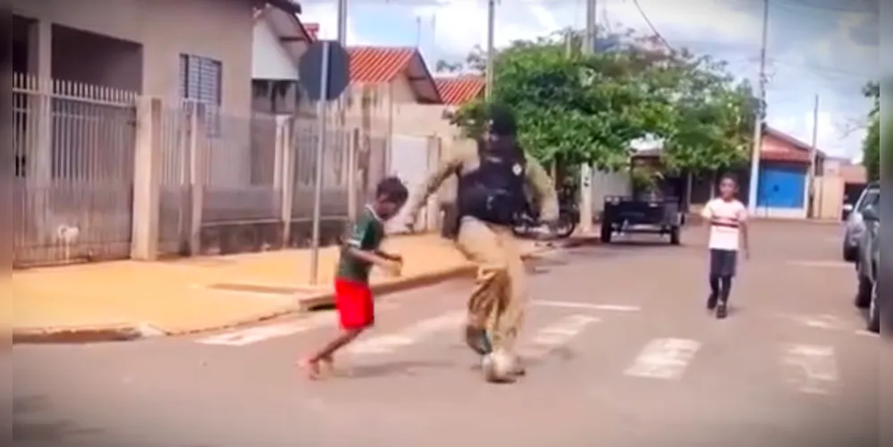 Segundo a PM, os policiais faziam patrulhamento na cidade e foram convidados pelas crianças a fazerem um ' 2x2'. No intuito de uma proximidade maior com a comunidade, eles toparam o desafio.