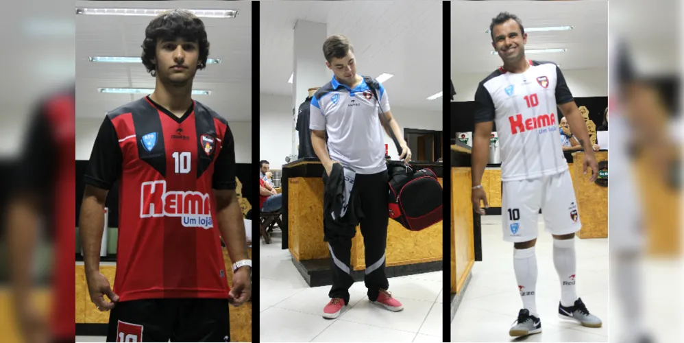 Em evento realizado na Oak Bier Store, bairro Ronda, na noite de segunda-feira (15), O Keima Futsal/AFP apresentou os novos uniformes Razza para a disputa da Chave Ouro do Paranaense. Desfilaram os atletas Dudu e Gustavo, ambos da peneira de Ponta Grossa, além do preparador físico da equipe, Rafael Araújo.