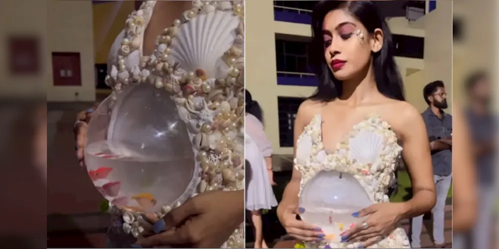 No vídeo compartilhado no Instagram, no fim de setembro deste ano, pelo perfil da maquiadora Preethi Jerlin, é possível ver a modelo usando um vestido estilo sereia, cheio de conchas, e com uma estrutura transparente em forma de aquário presa na frente. Em certo momento, surge uma pessoa que derrama um saco com peixinhos e água dentro do aquário.