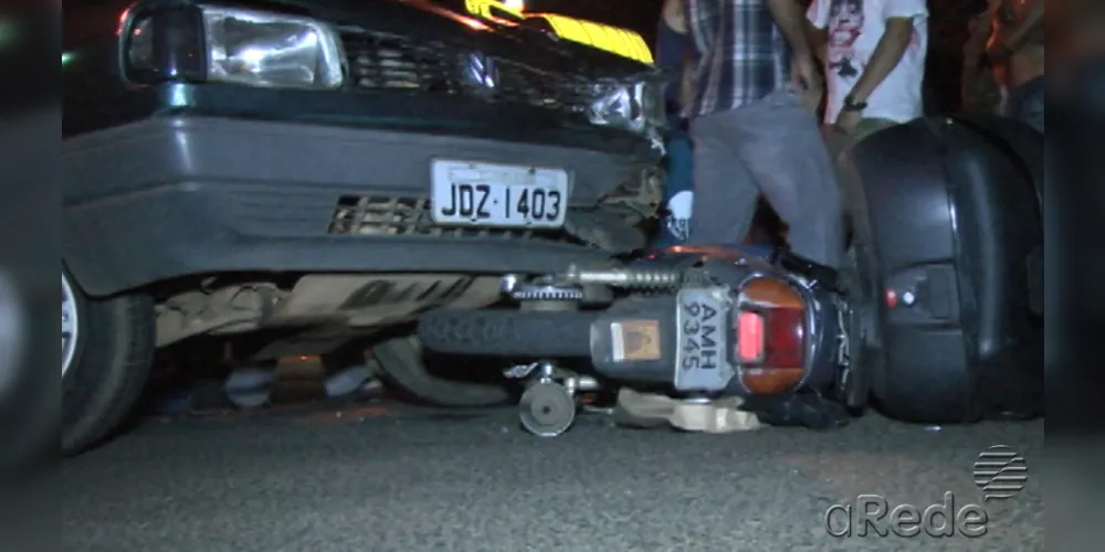 Duas pessoas, um homem e uma mulher estavam em uma moto e foram literalmente atropelados por um carro, ontem (14), por volta das 19h50, no bairro Uvaranas. Renan Gregório Trancoso Godoy, de 29 anos, e Tatiana Ferreira, de 28, trafegavam pela Rua Leopoldo Froes, à uma quadra da Avenida Carlos Cavalcanti, quando um veículo Volkswagen Gol os atingiu.