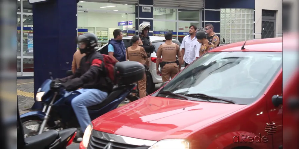 Uma 'fechada' no trânsito acabou em muita confusão e virou caso de Polícia em Ponta Grossa. Dois motoristas se desentenderam por volta das 17h30 na esquina das ruas Comendador Miró e Augusto Ribas, no centro da cidade. O motoqueiro teria feito menção de estar armado para o motorista do veículo e o tumulto começou.