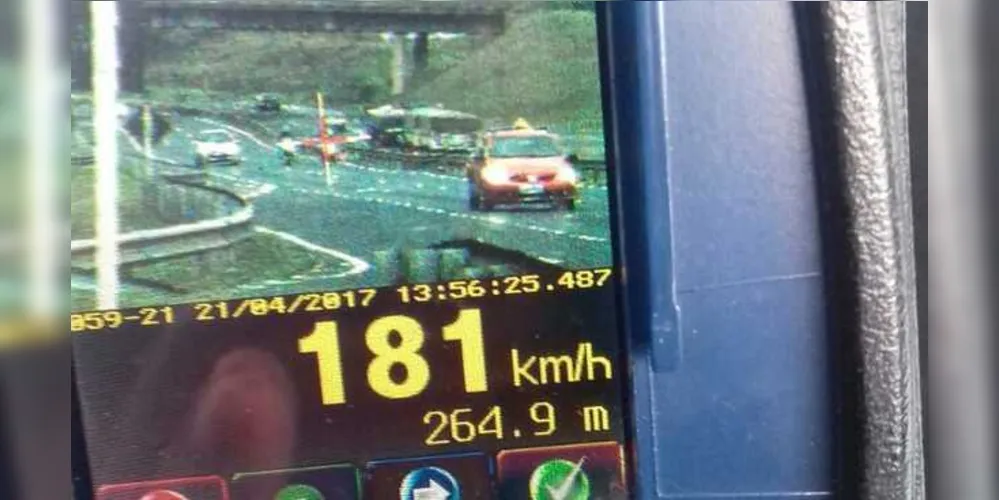 A Polícia Rodoviária Federal (PRF) flagrou, no trecho urbano da BR-376 (Rodovia do Café), em Ponta Grossa, dois motociclistas transitado a mais de 180 km/h. Durante a fiscalização com o radar móvel na operação do feriado prolongado, logo no início da tarde, por volta das 14 horas, um policial registrou a velocidade de exatos 181 km/h para ambos. O mais grave de toda a situação é que se trata de um trecho onde o limite de velocidade é de apenas 80 km/h, por ser um trecho urbano. O local exato do flagra foi a Avenida Presidente Kennedy, entre o viaduto do Santa Terezinha (Rua Anita Phillipowski) e o radar fixo (lombada eletrônica) nas proximidades do autódromo André de Geus.