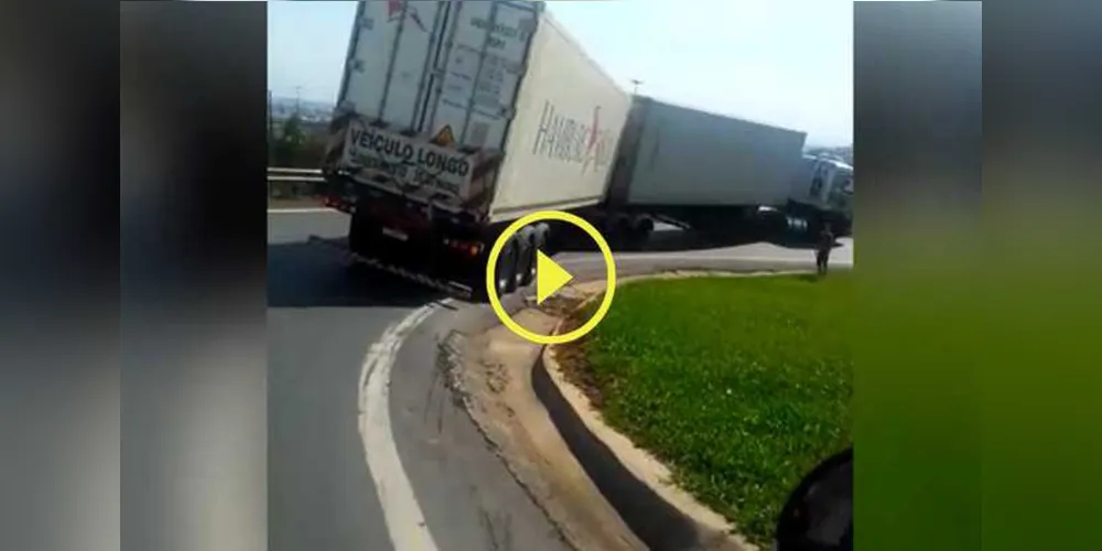 Carreta ‘cai’ em degrau na pista e quase tomba em PG