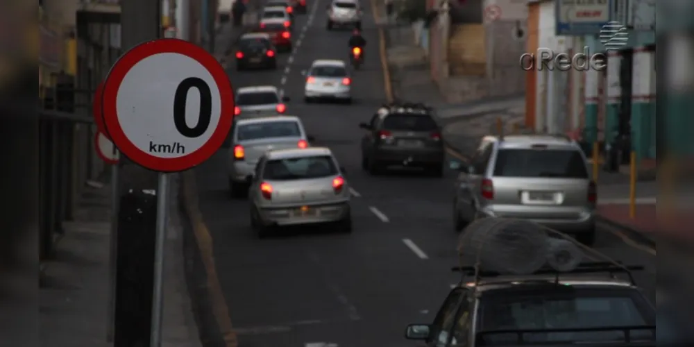 Motoristas que passam na Rua do Rosário, na região central de Ponta Grossa, se surpreendem com uma placa de limite de velocidade que marca 0 km/h. Uma das placas está localizada na esquina da Rua do Rosário com a General Carneiro. Ao longo da via, há uma segunda placa que marca a quilometragem erroneamente.