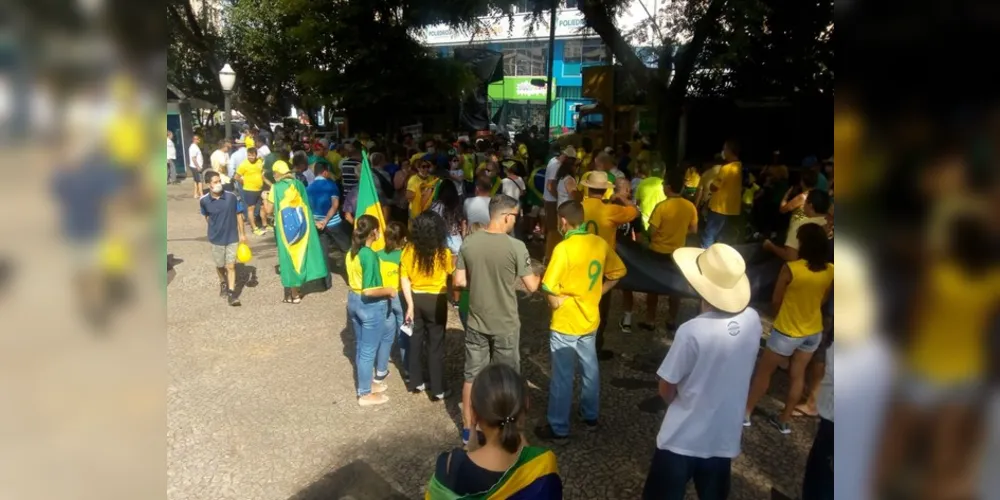 Centenas de pessoas estão reunidas na Praça Barão de Guaraúna (Praça dos Polacos), na tarde deste domingo, no Centro de Ponta Grossa, para uma manifestação pró-governo de Jair Bolsonaro. No manifesto, inúmeros manifestantes estão utilizando máscaras e sendo servidos com álcool em gel, como medida de prevenção contra o coronavírus. A manifestação teve início às 15 horas e há a previsão que haja uma passeata pela avenida Vicente Machado, em direção ao Parque Ambiental, onde deverá haver uma concentração final dos manifestantes. O local conta com um caminhão de som e a maioria dos participantes utiliza roupas nas cores da bandeira nacional.