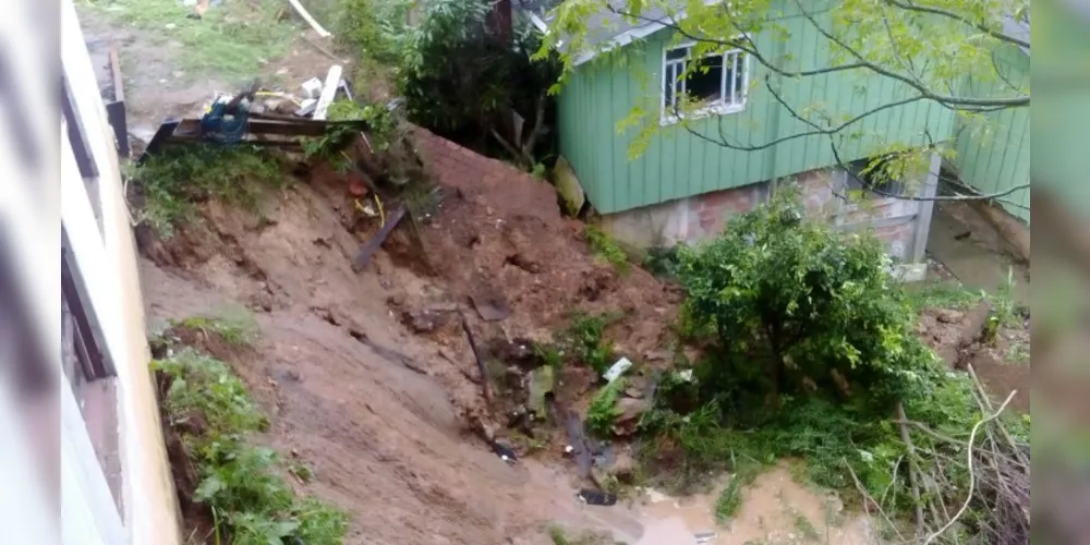 A chuva forte que atingiu Ponta Grossa nesse domingo (10) deixou estragos na cidade. A Defesa Civil do município teve que interditar três casas no bairro Catarina Miró após um deslizamento de terra.