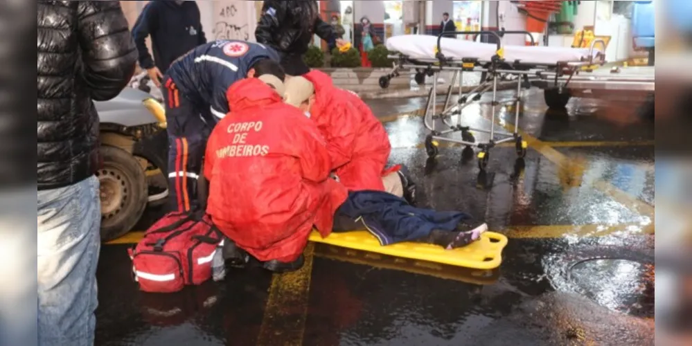 Uma mulher, de 27 anos, ficou ferida após ser atropelada no cruzamento da avenida Vicente Machado com a rua 7 de setembro, na região central de Ponta Grossa. Uma equipe da Guarda Civil Municipal e um socorrista do Samu passavam no local no momento do acidente e prestaram os primeiros atendimentos à vítima. Ela sofreu lesões e precisou ser encaminhada para a UPA Santana. O acidente aconteceu na noite desta quinta-feira (12). A jovem passa bem e não corre risco de morte.