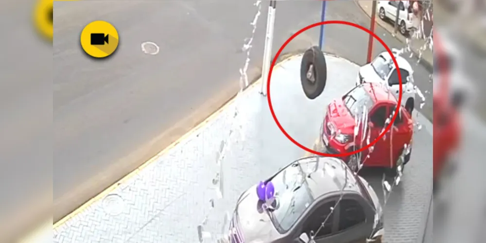 Um carro exposto em uma concessionária na avenida Carlos Cavalcanti, em Uvaranas, foi atingido pelo pneu de um caminhão na manhã desta segunda-feira (11) em Ponta Grossa. A situação foi registrada pelo sistema de monitoramento do estabelecimento.