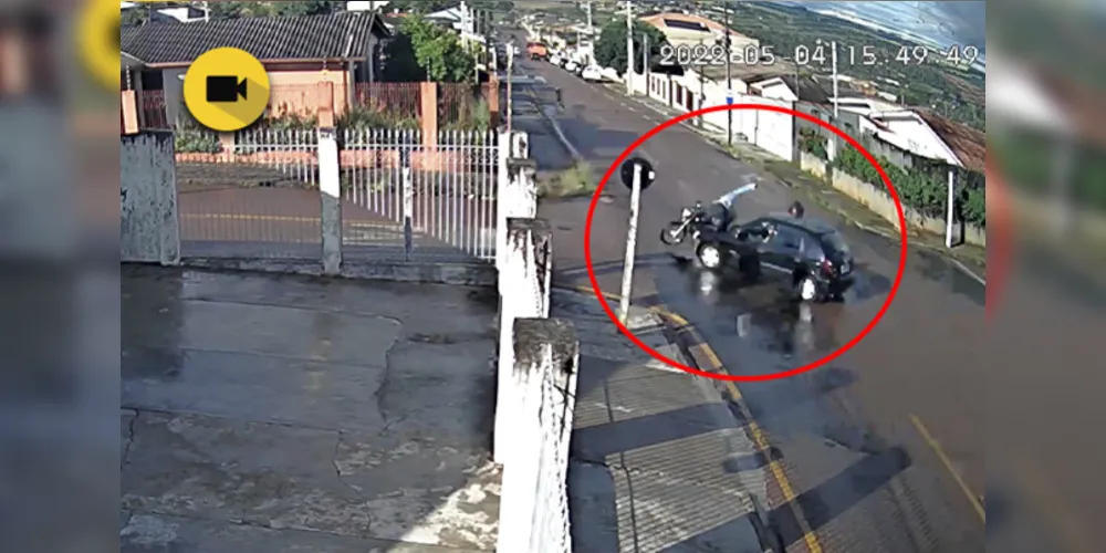 Um motorista foi flagrado por câmeras de segurança após se envolver em um acidente de trânsito em Ponta Grossa (veja o vídeo acima). A colisão ocorreu na última quarta-feira (4) e foi registrada na esquina entre as ruas Rio Jordão e Almirante Barroso, no Núcleo Rio Verde, bairro Órfãs.