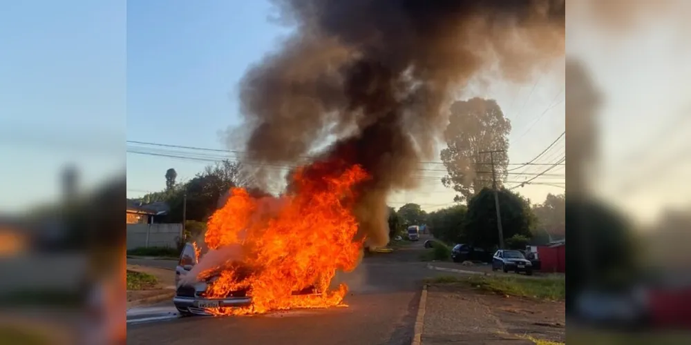 Veículo ‘apaga’ e pega fogo em bairro de Ponta Grossa