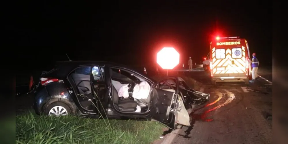 Mulher estava em um Hyundai HB20 e teria sido ejetada após a colisão, que ocorreu na madrugada desta terça na avenida Senador Flávio Carvalho Guimarães - trecho urbano da PR-151