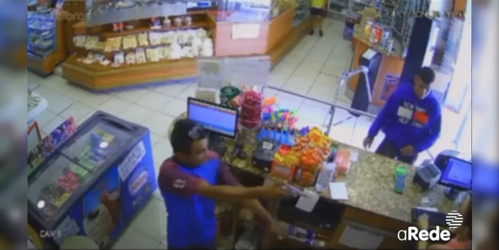 A Panificadora Vila Velha foi assaltada na tarde do domingo (14). O crime foi registrado pelas câmeras de segurança por volta das 12h20. Localizado no Centro da cidade, o estabelecimento contava com clientes que estavam consumindo produtos no local. No vídeo dá para perceber que a dupla de assaltantes tenta disfarçar o crime em um primeiro momento. Um dos criminosos estava armado.