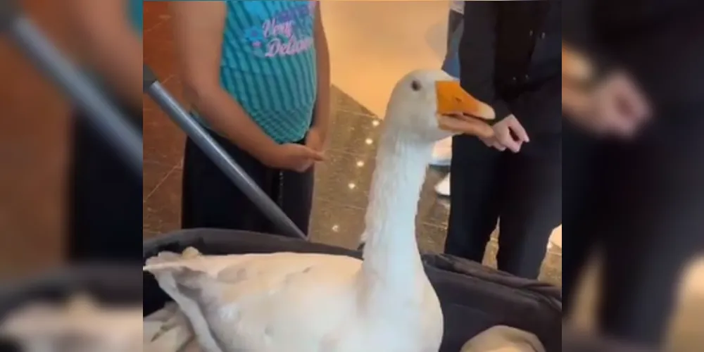Os olhares dos moradores de Ponta Grossa que estavam passeando pelo Shopping Palladium, neste final de semana, ficaram todos voltados ao ganso Patolino. A tutora do animal, Fernanda Morais, contou que sempre leva o ganso para todo lugar: "Patolino não fica sem mim. Ele chora muito, por isso levo ele por aí".