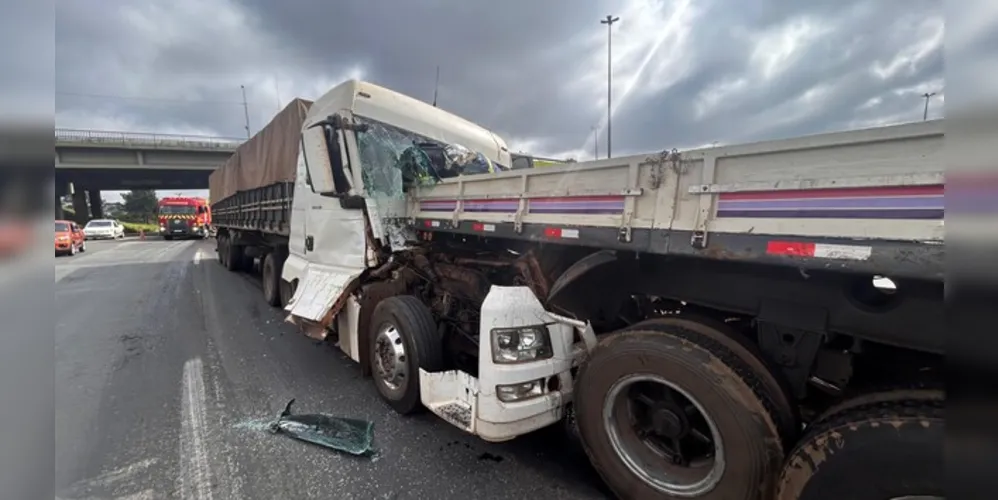 Motorista fica preso em ferragens após colisão entre caminhões em PG