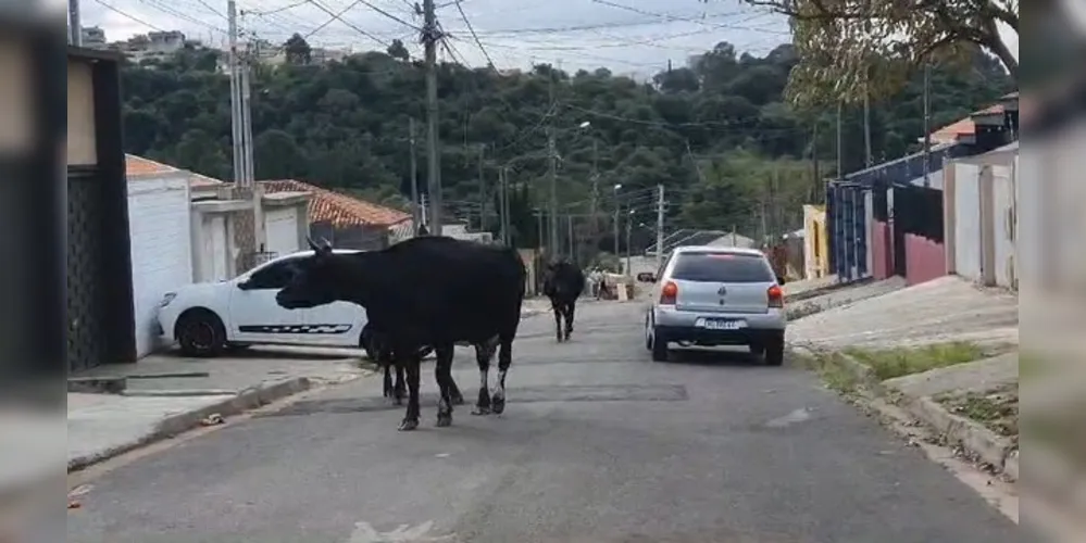 Moradores da rua Orlando Stella, no bairro Neves, em Ponta Grossa, se depararam com uma situação inusitada na tarde desta quarta-feira (24), três vacas transitavam pelo local, caminhando em meio aos carros que passavam pela região.