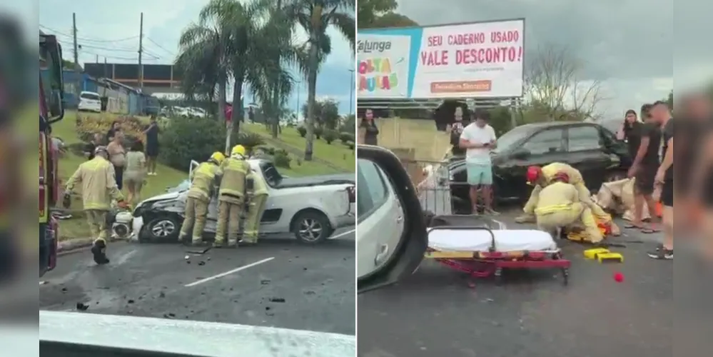 Um grave acidente foi registrado na tarde deste sábado (17), na avenida Bispo Dom Geraldo Pellanda, na região central de Ponta Grossa. Quatro veículos se envolveram na colisão, além de uma 'catadora' de recicláveis que foi atropelada.