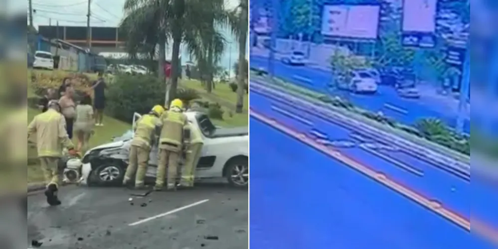 Confira o momento do grave acidente envolvendo quatro carros em Ponta Grossa