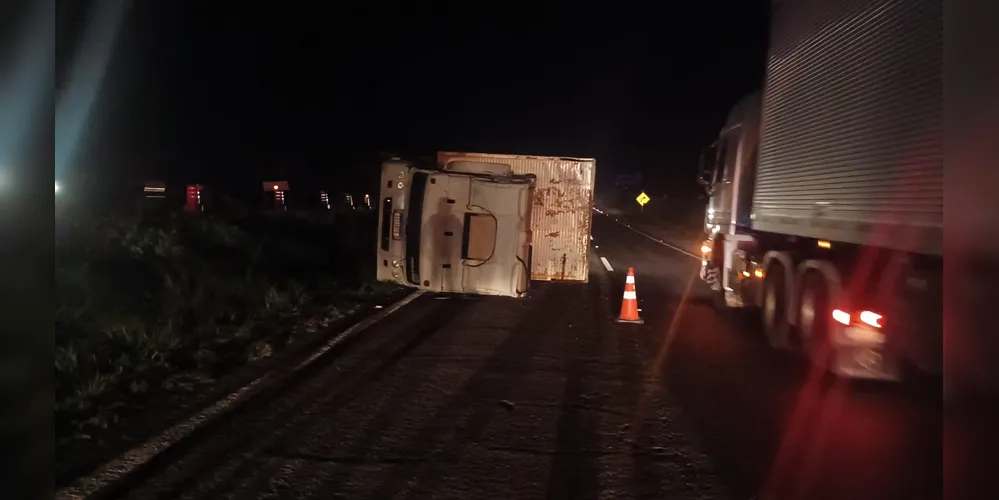 Tombamento de caminhão deixa BR-376 parcialmente interditada em PG