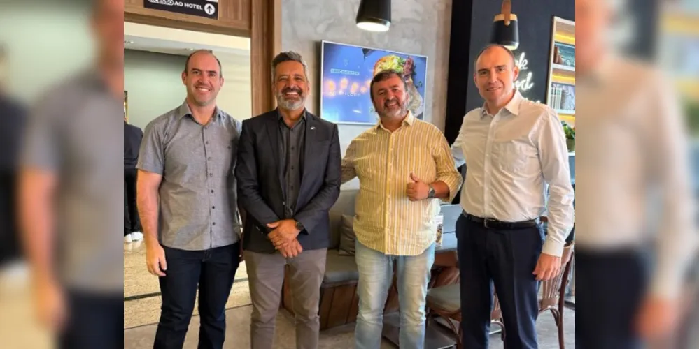 O vice-prefeito de Ponta Grossa, Pr. Moisés Faria, participou de uma reunião com empresários da cidade para discutir turismo, desenvolvimento e oportunidades de investimento. O encontro ocorreu com Daniel Wagner e Rafael Wagner, proprietários do Hotel Planalto Select, e Fábio Cecatto, à frente do Botequim, que também são os idealizadores do projeto Rota 01 Mototurismo.